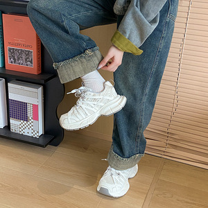 2025春夏の新型レトロな運動カジュアルシューズのお父さんの靴の女性の松餅の厚い底の百合の女性の靴のファッションの板の靴