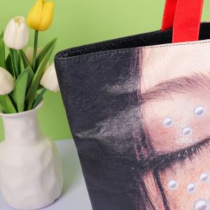 片肩手提げ袋顔プリントデュポン紙袋水洗い大容量防水耐引き裂きトートバッグカスタムロゴ