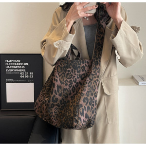 ヒョウ柄キャンバストートバッグレディース大容量2025新作シンプルショルダーメッセンジャーバッグポータブル通勤バッグママバッグ