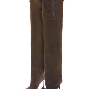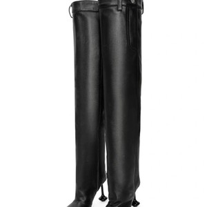 欧美风绒面异形跟过膝长筒靴~新款圆头拼接金属扣超高跟堆堆靴女