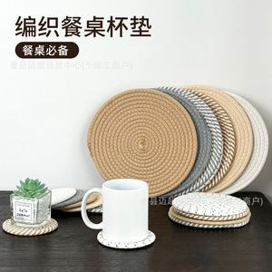 現物の綿織のコースターの円形の食卓の防熱マットのシンプルな日本式のシンプルな食事マットの断熱マットのレストランの砂の鍋のマット