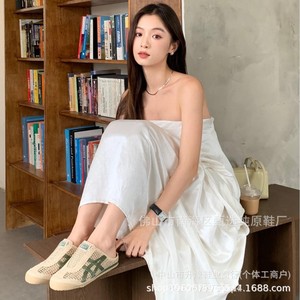 夏のTiger鬼塚虎男女虎編み半托カップルカジュアル百合ゼラニウム麻スリッパフラットシューズ