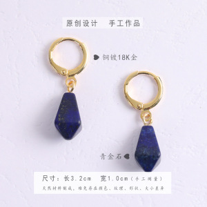 中国産ラピスラズリイヤリング、レトロオリジナルデザイン、シンプルイヤリング、多用途、軽い高級感、ハイエンド手作りイヤリング卸売