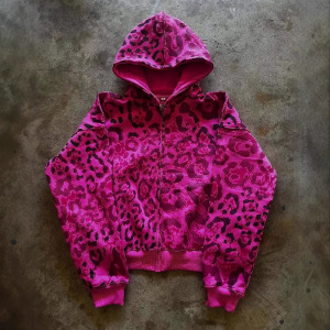 ヒョウ柄デジタル 3D プリントフード付きジッパースウェットシャツカーディガン新しいスタイルのパーソナライズされた多用途トップスとスウェットパンツスーツ