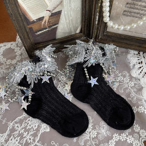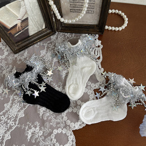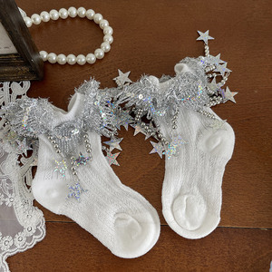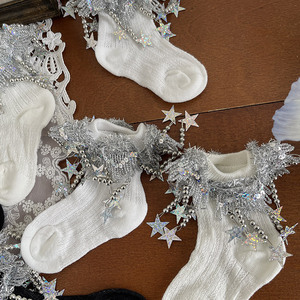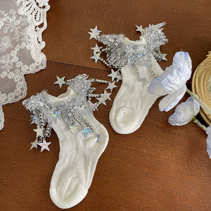 Hotmoon春夏新品五角星スパンコールフリンジかわいい女の子赤ちゃん学生薄いかかと靴下