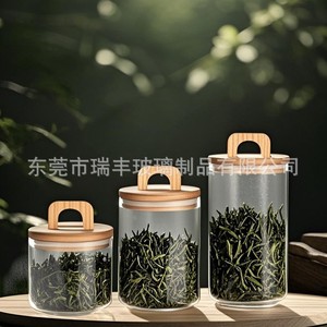 新しい家庭用ガラス瓶コーヒー豆保存瓶透明保存ボトルアカシア木製蓋茶瓶密封瓶