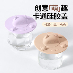 クリエイティブ猫シリコンカップカバー食品級耐高温防塵汎用カバーグラスマグカップかわいいアニメ