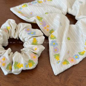 新しい中国風の刺繍花スクエアスカーフヘアバンド、甘くて高級なヘッドバンドヘアアクセサリー、大きなヘッドバンド、牧歌的なスタイルのインテースループ