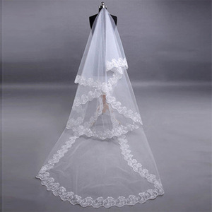 花嫁のベール、ロングトレーン、白、単層レース、韓国風ウェディングドレスアクセサリー、レースネットベール、ウェディングドレス