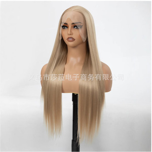 ヨーロッパとアメリカのロングストレートミドルパートウィッグ手織り人前レースヘッドギアウィッグ工場直販ウィッグクロスボーダー