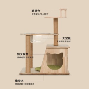 大型無垢材猫クライミングフレームダブルスペースカプセル猫の巣キャットツリー一体型猫棚猫スクラッチボード猫スクラッチポールペット用品