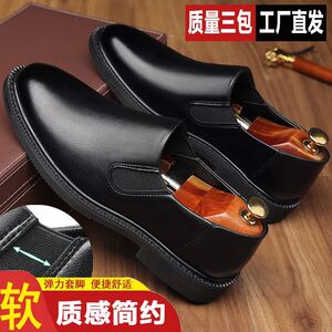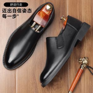 男性用黒のソフトレザーシューズ、高級カジュアルビジネスフォーマル通勤作業靴、柔らかいソール、滑り止め、中年お父さん靴