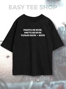 欧洲站纯棉短袖T恤宽松休闲俄罗斯字母印花简约日常圆领百搭上衣
