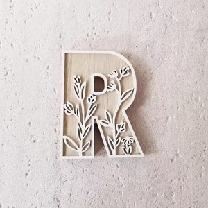 クロスボーダー彫刻アルファベット木製装飾置物花柄デザイン家庭用工芸品置物感
