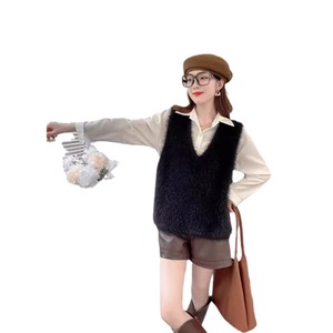 模造ミンクベルベット V ネックベストニットベスト女性の秋と冬無地プルオーバーノースリーブファッションアウターセーターベスト