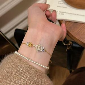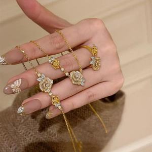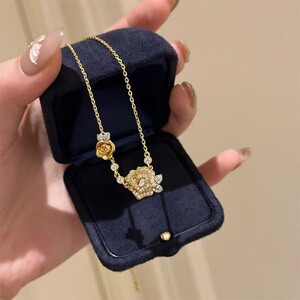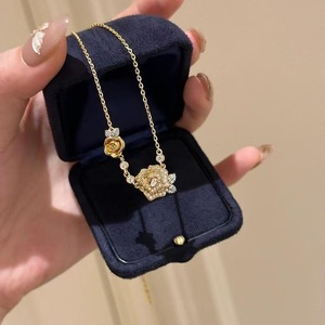フランスのレトロなドリルの双生のバラのネックレスの女性の軽い豪華な気質のツバキの花のブレスレットの小さい香家の古い花の指輪