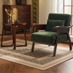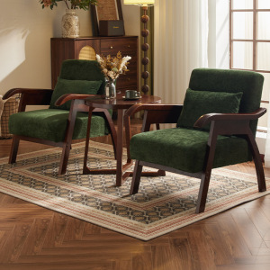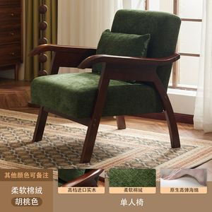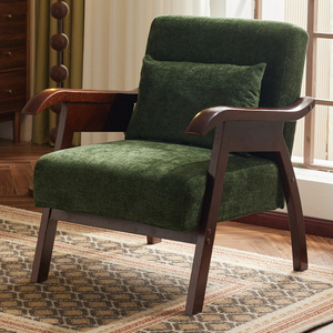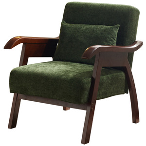 【柔软棉绒】单人椅-胡桃色木架-绿色