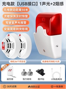 充電式モデル [USBインターフェース] 音と光1個 + 煙感知器1個 + リモコン1個 + 磁気吸引1個