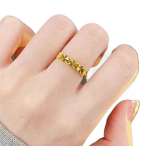 ベトナム沙金草花女戒四葉草指輪素輪食環軽豪華小衆設計シンプルで高級感があります。