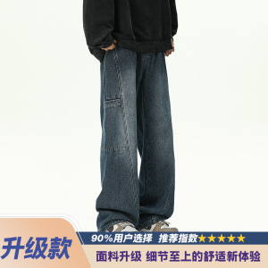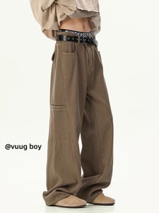 メイラードコーヒー色のワークジーンズ、男性と女性用、春と秋のルーズストレートカジュアルボーイズドレープワイドレッグパンツ
