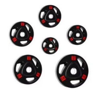 厂家直销飞铃片包胶杠铃片商用家用大孔举重手抓片橡胶铸铁健身