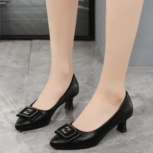 高跟鞋女黑色尖头细跟2025猫跟工作鞋软底漆皮职业女单鞋时尚休闲