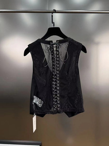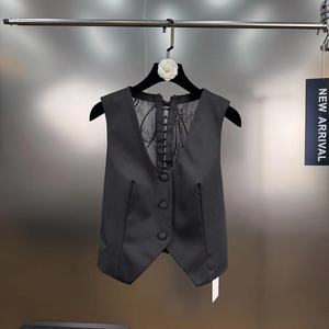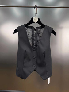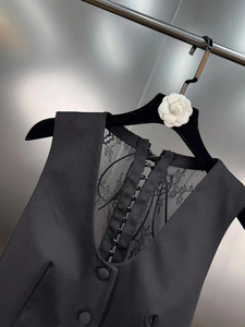 柚子mm2025年春夏フランス復古しわ腰レースのつなぎ合わせがやせた気質を見せているベスト