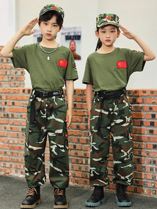 儿童迷彩服套装夏季短袖小学生军训服男童特种兵夏令营女孩演出服