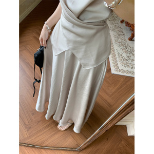 小众不规则系带设计感缎面背心半身裙夏季新款时尚两件套女潮通勤