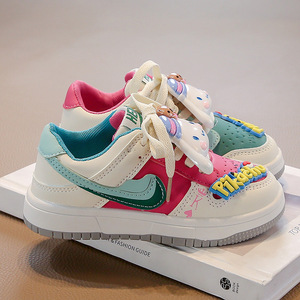 女童玉桂狗休闲鞋2025春季新款鸳鸯色中大童女孩皮面防滑运动板鞋