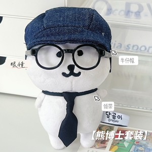 スマイリーハット + 黒フレームメガネ + 黒かばん (人形は含まれません)