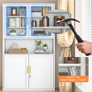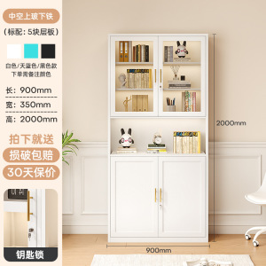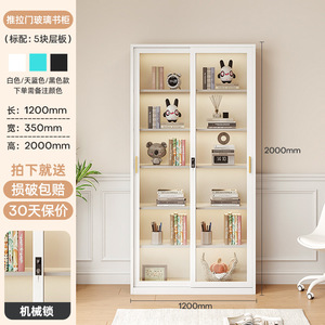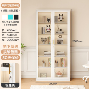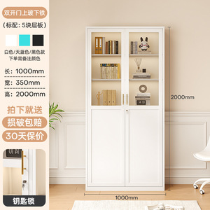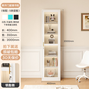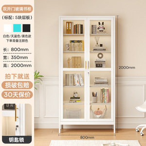 北欧铁艺书柜玻璃门置物架收纳柜现代简约落地书橱客厅储物小柜子