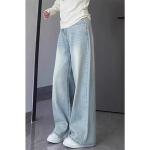 女性用ライトカラーワイドレッグジーンズ、ハイウエスト、春の新作、プラスサイズ、太ったmm、ゆったり、スリム、洋ナシ型ボディストレートパンツ