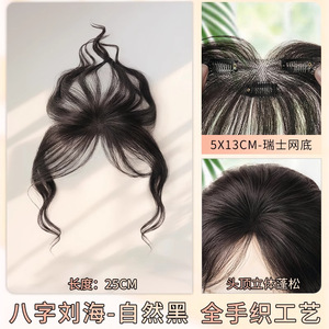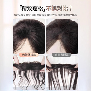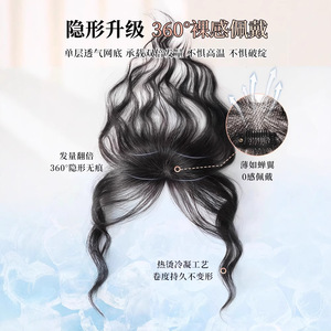 女性用前髪ウィッグ、自然な高頭頂部、ふわふわの本物の髪、ウェーブのかかった巻き毛、目に見えない胎児の毛の前髪、薄いヘアラインステッカー