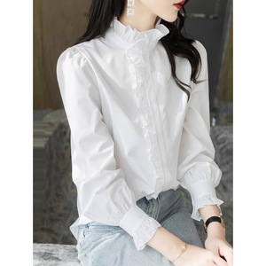 年秋装女款荷叶边设计感立领白色衬衫女时尚内搭打底长袖衬衣