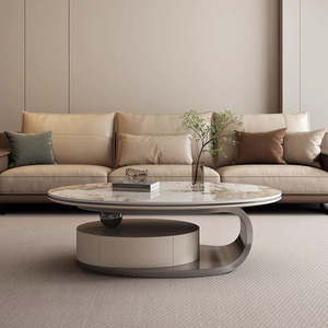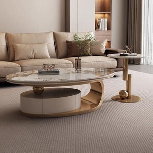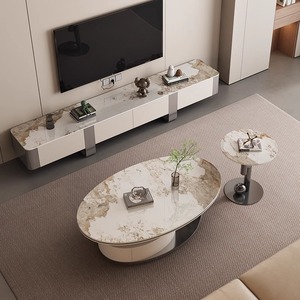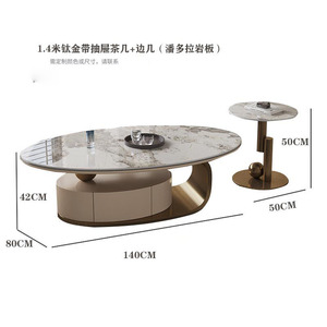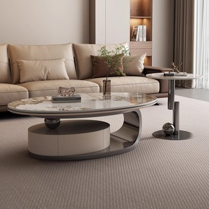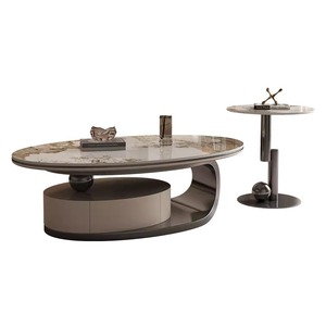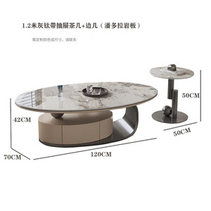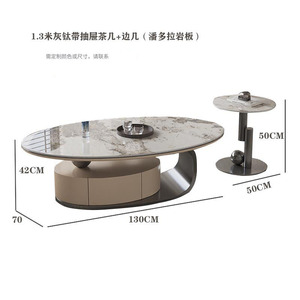 イタリア式の軽い豪華な現代の簡単な岩板のお茶のいくつかの楕円形の大きさの組み合わせはアイデアのテレビの棚の客間の家庭を引き出します。
