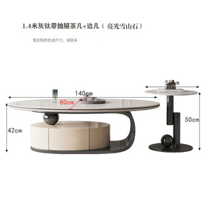 1.4m グレーチタン コーヒーテーブル 引き出し+サイドテーブル付き (雪山石スレート)