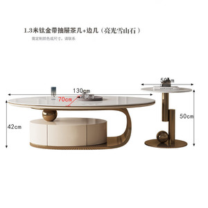 1.3m グレーチタン コーヒーテーブル 引き出し+サイドテーブル付き (雪山石スレート)