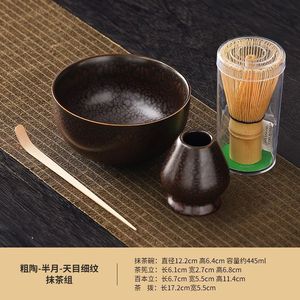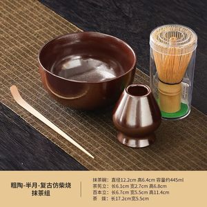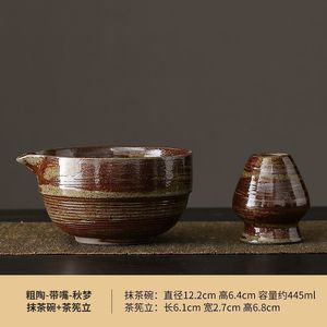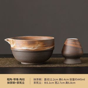 粗陶器抹茶ボウル注ぎ口付き抹茶ツールブラシ日本茶ボウルカップミキサー茶器具セット禅スタイル
