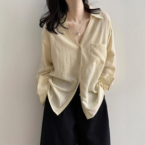 2025日糸亜麻長袖純色シャツ女性夏の新型日焼け止めカーディガン上着