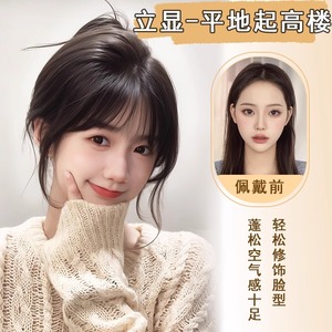 かつら前髪の女性は自然に痕跡のない増発量をシミュレーションします。