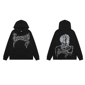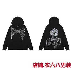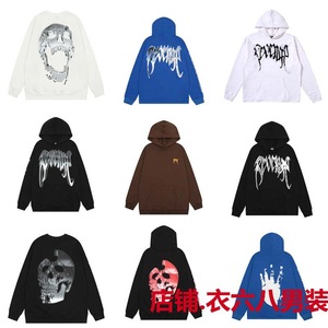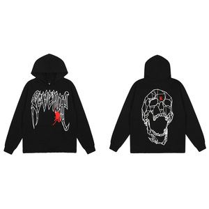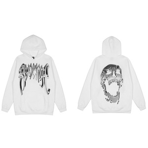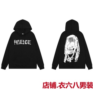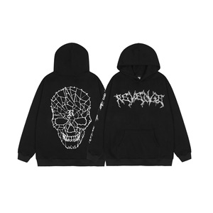 トレンディなブランドリベンジ刺繍キールニッチカップルスカルアメリカンルーズハイストリートカジュアルパーカースウェットシャツ