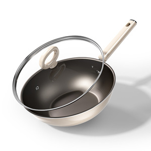 【30cm蓋付中華鍋】チタンセラミック 軽量 0コーティング 2~4人用