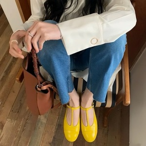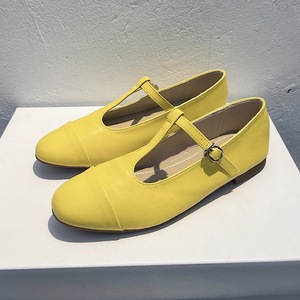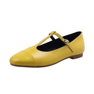 フレンチメリージェーンシューズ女性用 2025 インターネットセレブイエローシューズ本革浅い口フラットシューズカジュアルレディースシューズ大小サイズ