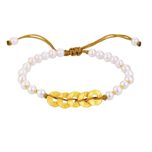 Shuibeijuzi 999 五帝マネーブレスレット天然真珠編みロープブレスレットガールフレンドへのバレンタインデーギフト