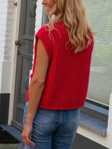 ヨーロッパとアメリカのクロスボーダー春と秋の女性の無地ノースリーブカジュアルエレガントなVネック厚手のニットベストフロントボタンカーディガン