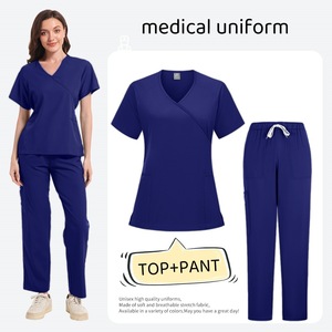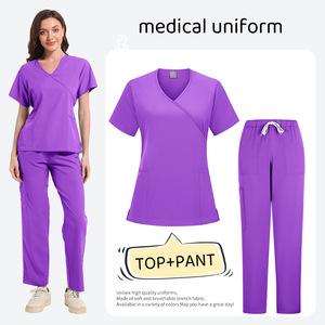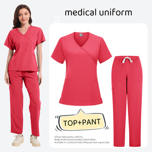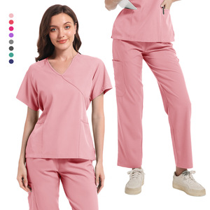 弹力舒适大码外贸热销护士服医生工作服女纯色磨砂套装洗手衣多色