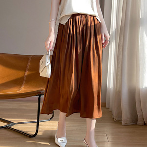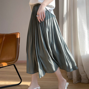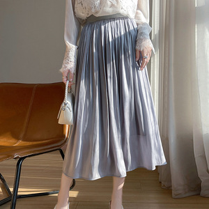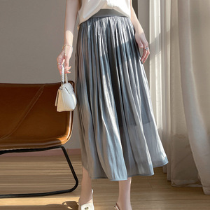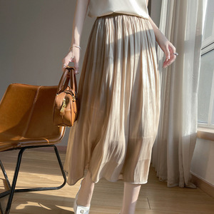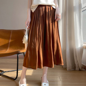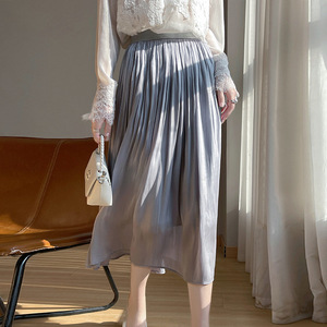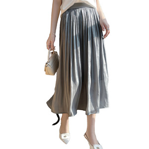 春夏の新型のしわの金の紗の中で長いスカートの女性の腰のゆったりとしている股のa字のスカートの網の糸のシフォンのスカート