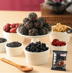 赤いナツメヤシ、クルミ、桑の実、クコの実、黒ゴマの丸薬、独立した小さなパッケージ、新鮮で少し甘い、繊細なスナック