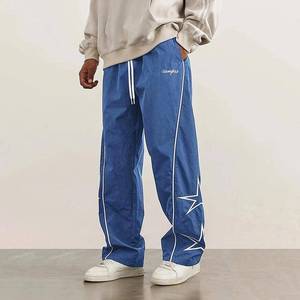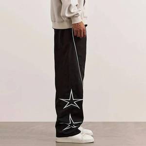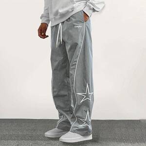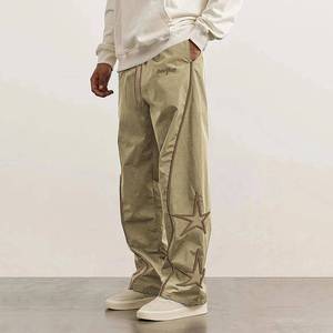 若者 2025 春夏ストレートパンツ香港スタイルトレンディなハイストリートカジュアルパンツメンズレトロ五芒星パンツワイド
